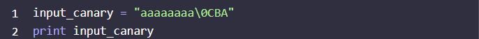 input을 버퍼에 8비트 stack_canary 영역에 \0CBA를 주면 아무런 일이 발생하지 않는다.
