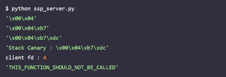 코드확인: dreamhack.io/learn/4#14 (ssp_server.py)