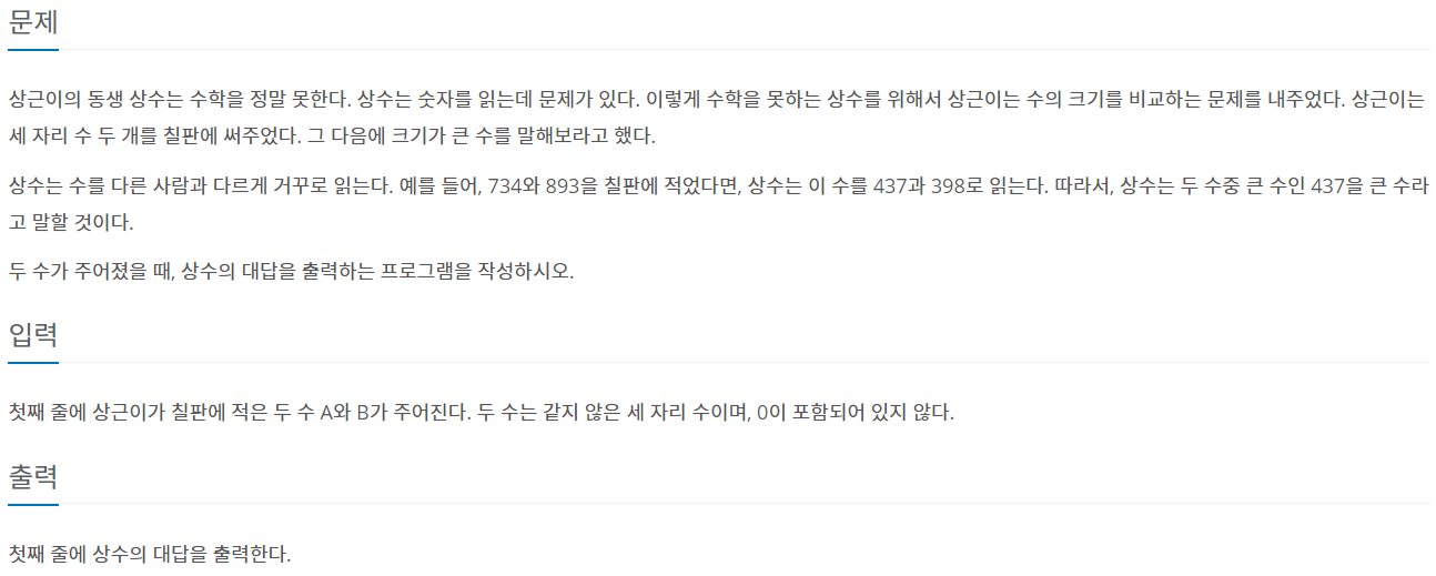 snum[0]과 snum[1]의 값을 비교해서 더 큰 수를 출력했다.