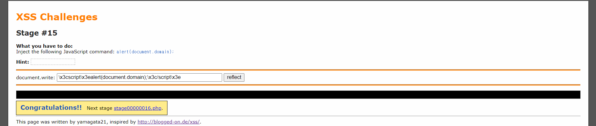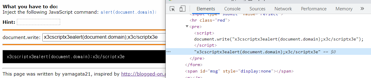 document.write로 <script>alert(document.domain);</script>입력하면 이번 문제를 해결할 수 있다.