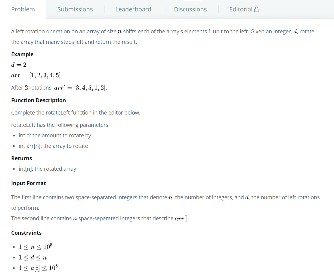 vector<int> rotateLeft(int d, vector<int> arr) {