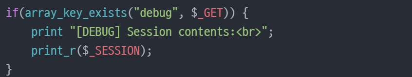 (두 번째 if문에 $_SEESION의 값을 확인할 수 있는 debug 기능이 있다.)