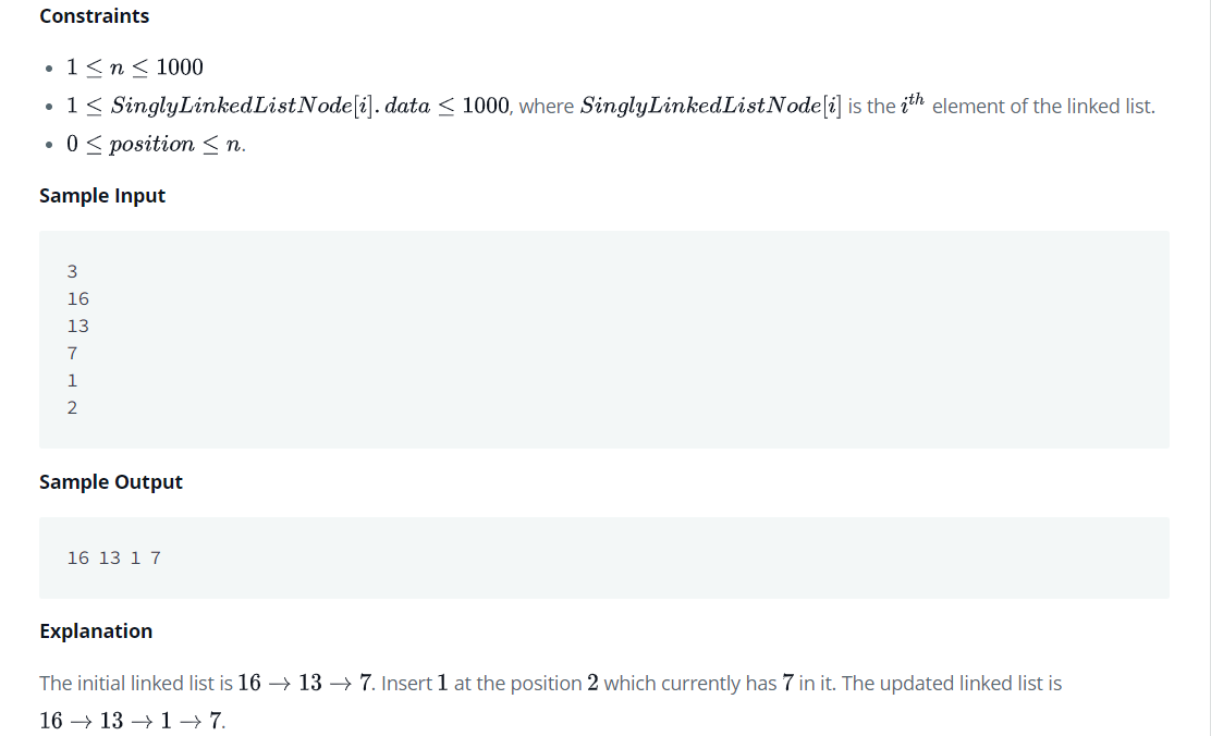 연결리스트의 특정 위치에 노드를 삽입하는 문제다.