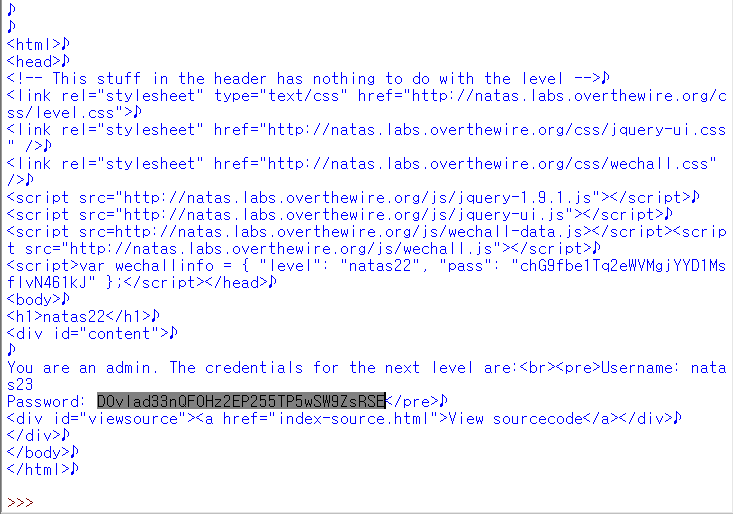 하지만 첫 번째 if문 때문에 natas23의 password가 출력된 페이지를 보기도 전에 새로운 페이지로 넘어가기 때문에 password를 확인할 수 없다.