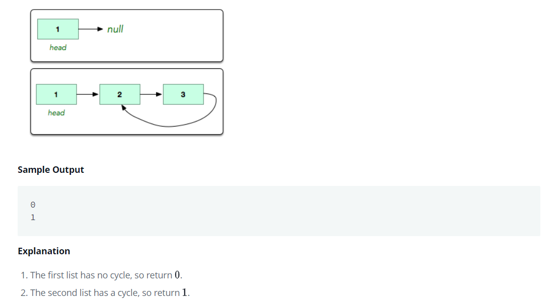 그렇지 않고 한 포인터가 NULL이 된다면 cycle이 존재하지 않는다는 의미이므로 while문을 종료하고 0을 반환한다.