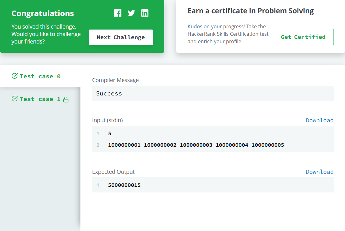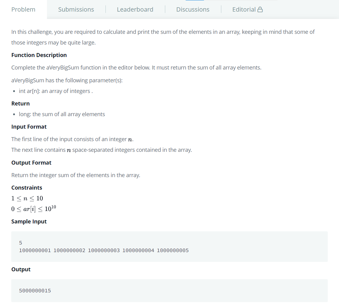 # A Very Big Sum (Warmup)