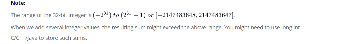 지난 문제처럼 int형을 사용할 경우 sum이 int의 범위를 넘어서므로 error가 발생한다.