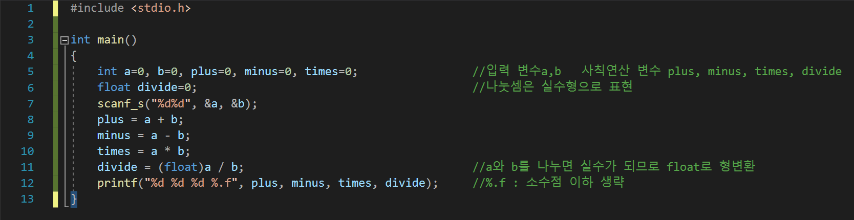divide = (float)a / b; //divide는 실수형 변수