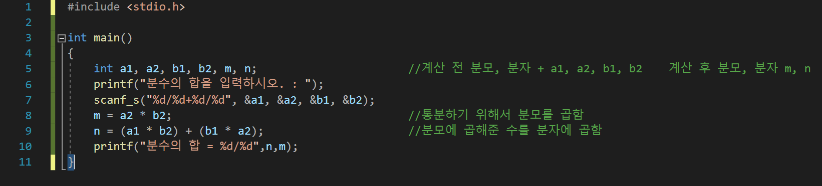 분자, 분모가 모두 양의 정수로 이루어진 두 개의 분수를 입력받아, 그것을 더하는 프로그램을 만들어보자.
