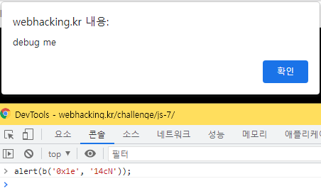 'debug me' alert창이 실행됐다.