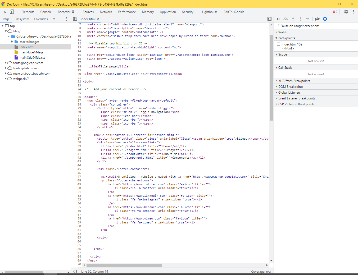 그러다가 webpack:// 아래에 styles 폴더에서 main.scss 파일을 발견했다.
