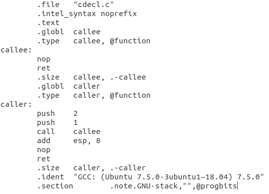 // -fomit-frame-pointer -S cdecl.c -w -m32 -fno-pic -O0