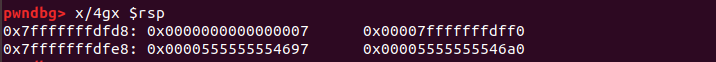 si 명령어로 한 단계 실행하고 x/4gx $rsi 명령어로 스택을 보면 rbp값인 0x00007fffffffdfe0가 저장된 것을 확인할 수 있다.
