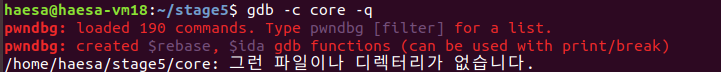 취약점 분석을 위해 일부러 오류를 발생시키고 core파일을 생성하려고 했다.