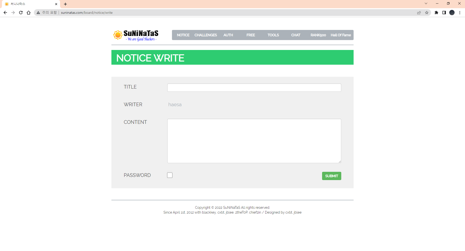 suninatas의 Notice board로 들어가봤는데 글작성 버튼이 존재하지 않았다.