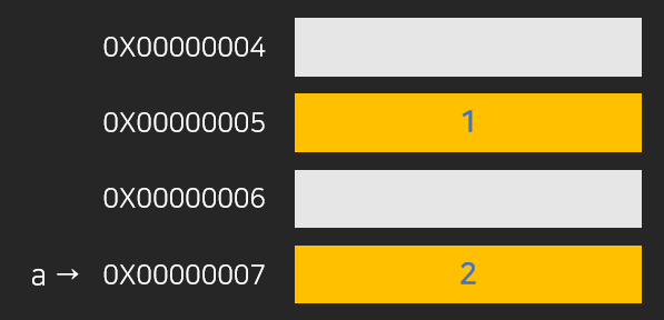 2λ μλ‘μ΄ λ©λͺ¨λ¦¬μ μ μ₯λκ³ , aλ μλ‘κ² ν λΉ λ°μ λ©λͺ¨λ¦¬λ₯Ό κ°λ¦¬ν€κ² λλ€.