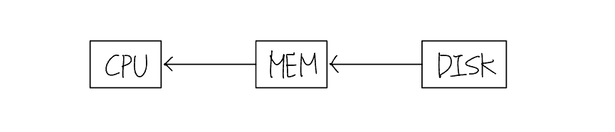 (컴퓨터에서 일반적인 데이터의 흐름은 디스크 → 메모리(주기억장치) → CPU)
