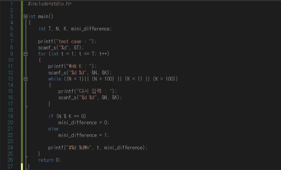 따라서 N을 K로 나누었을 때 나머지가 0이 아니면 mini_difference는 1, 나머지가 0이면 mini_difference는 0이 된다.