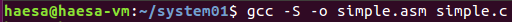 이제 위 C 프로그램을 어셈블리 코드로 변환하겠다. (리눅스 gcc 사용)