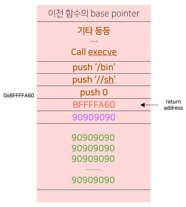 이제 buffer overflow를 이용한 공격이 어떻게 일어나는지 다시 살펴보자!