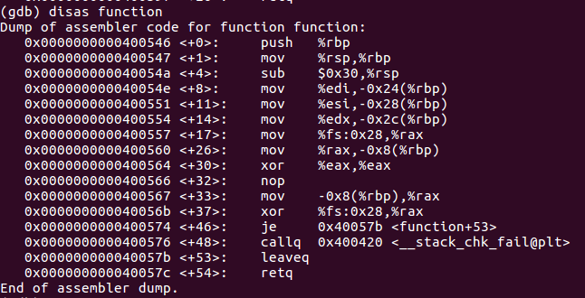 function() 함수의 프롤로그가 끝나고 만난 명령은 sub $0x28, %esp이다. 이것은 stack을 28바이트 확장한다.