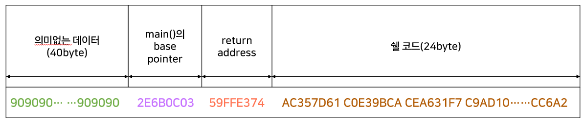 때문에 공격 코드의 바이트를 정렬할 때에는 byte order를 고려해야 한다.