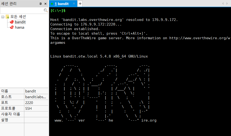 Xshell을 실행해서 게임에 접속했다.