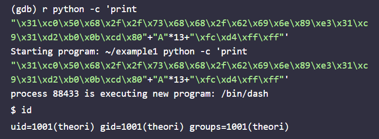 // gcc -o example1 example1.c -fno-stack-protector -z execstack -mpreferred-stack-boundary=2 -m32