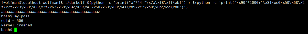 darkelf로 가기 위한 패스워드는 kernel crashed이다.
