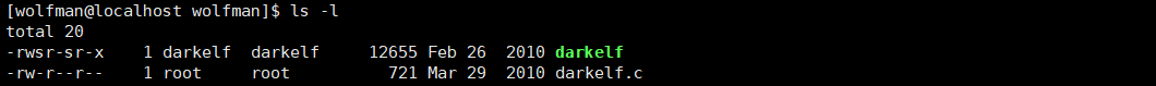 로그인한 후에는 ls명령으로 파일 리스트를 확인했다. 이번에는 darkelf.c 파일이 있는 것을 볼 수 있다.