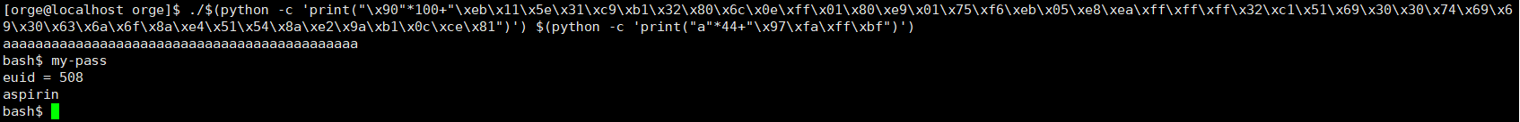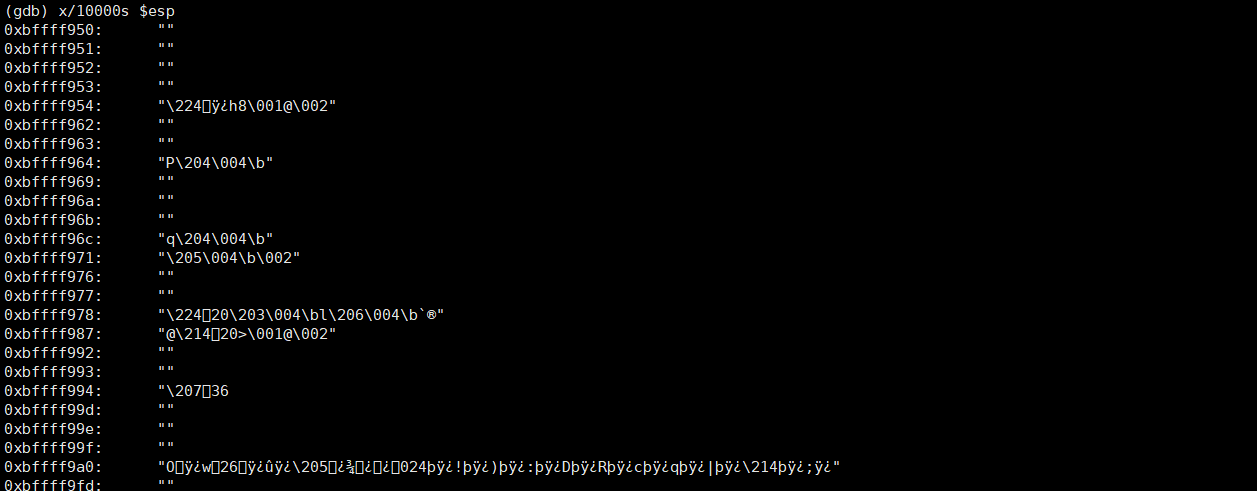 0xbffffa87에서 심볼릭 링크의 파일명을 찾았다. 이보다 조금 더 뒤의 주소를 골라 ret 영역에 덮어씌어 보자. 나는 0xbffffa97을 선택했다.