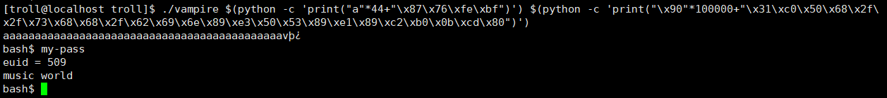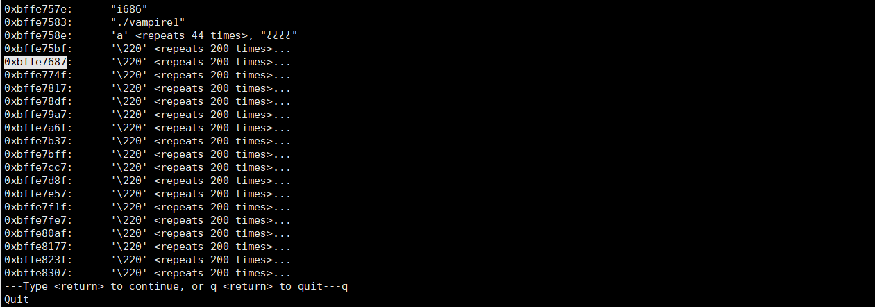 return address를 \xbffe7687로 정하고 공격을 진행했다.
