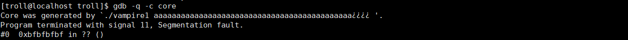 core파일을 확인해보니 nop 영역이 \xbffe~에 존재했다.